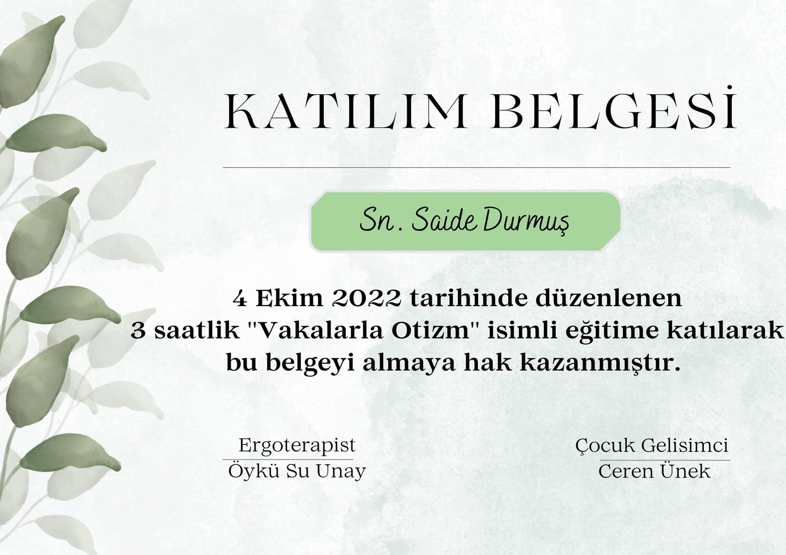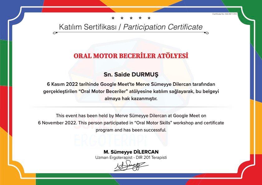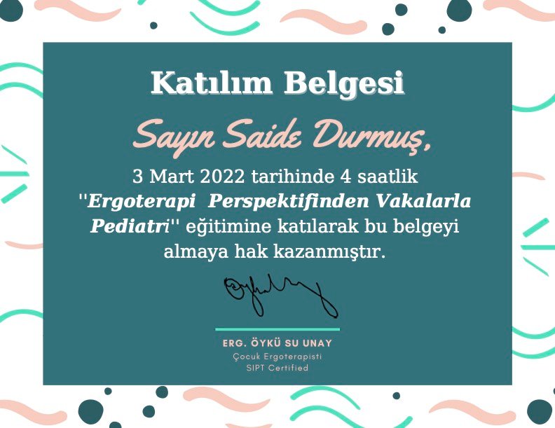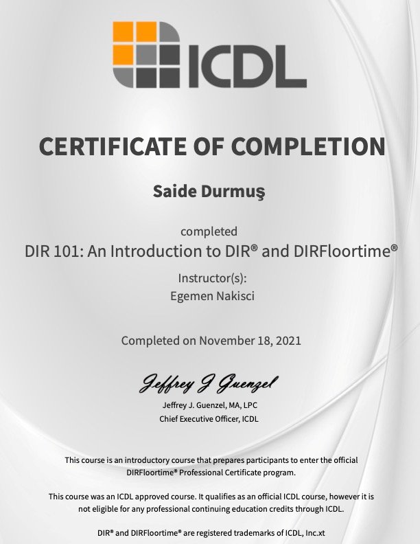 Tüm bunlara ek olarak yavrularımıza daha yetkin bir şekilde müdahalede bulunmak için gerekli eğitimleri aldım (Floortime, Neuro Format, masaj, refleksoloji…) ve almaya devam etmekteyim.